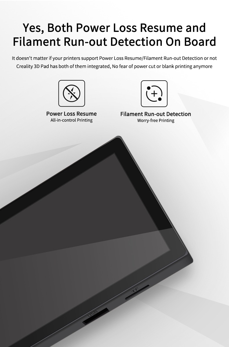- Power loss recovery & filament run-out detection