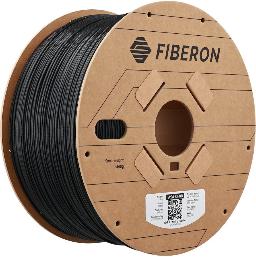 Fiberon™ ASA-CF08 1.75 mm (3 kg) is a premium engineering 3D printing filament made from ASA (Acrylonitrile Styrene Acrylate) reinforced with 8% carbon fiber for enhanced strength, stiffness, and performance. Designed for demanding outdoor and functional applications, this high-quality filament combines the rugged durability of ASA with the mechanical advantages of carbon fiber — making it ideal for structural prototypes, automotive components, jigs & fixtures, and end-use parts.